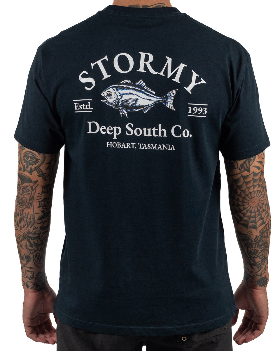 Embrace the rugged charm of the Tasmanian coast with the Stormy 93 Blue Eye T-Shirt in classic navy. Designed for those who appreciate quality and adventure, this premium tee features a striking Blue Eye fish illustration, embodying the spirit of the deep south. The text “Stormy Deep South Co, Hobart Tasmania – Est 1993” celebrates Stormy’s heritage of crafting exceptional gear since 1993. Made from soft, durable fabric, this t-shirt delivers comfort and style for everyday wear or coastal explorations. Perfect for those who live for the ocean and quality craftsmanship.